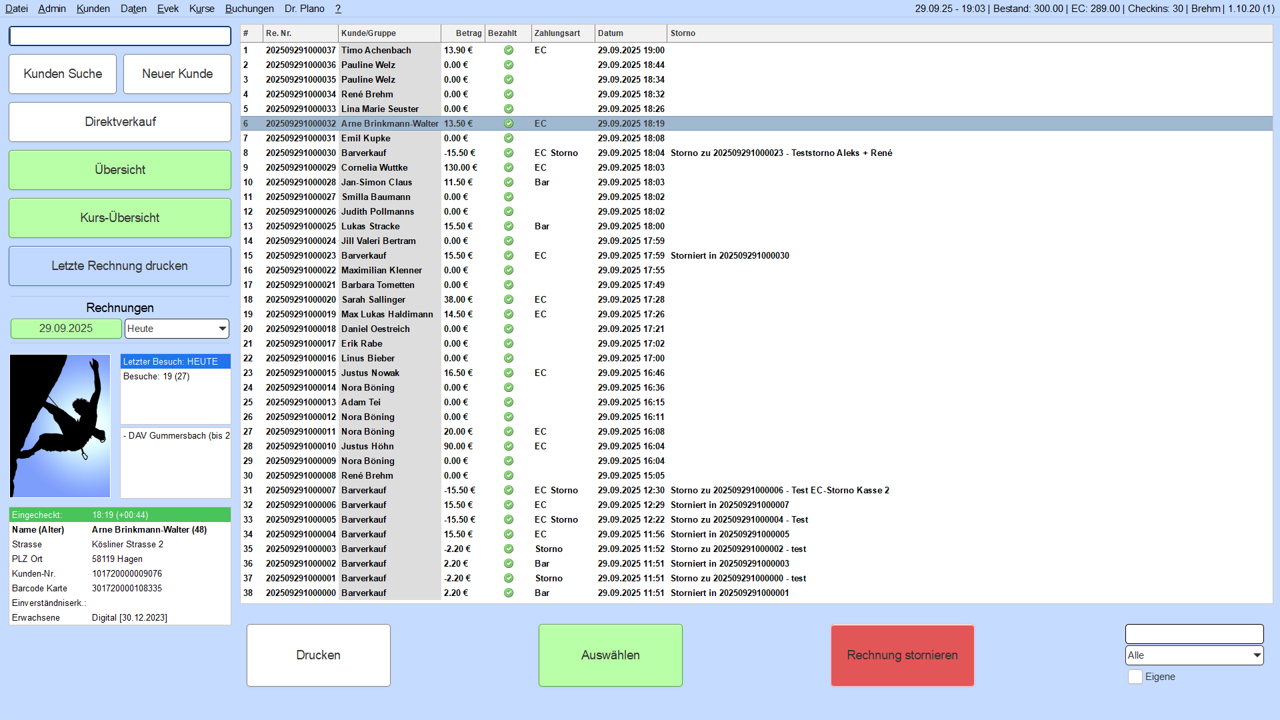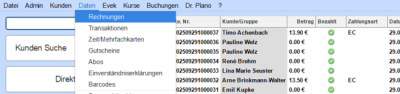 Daten –> Rechnung –> betreffende EC-Zahlung auswählen und unten rechts auf Rechnung stornieren klicken.